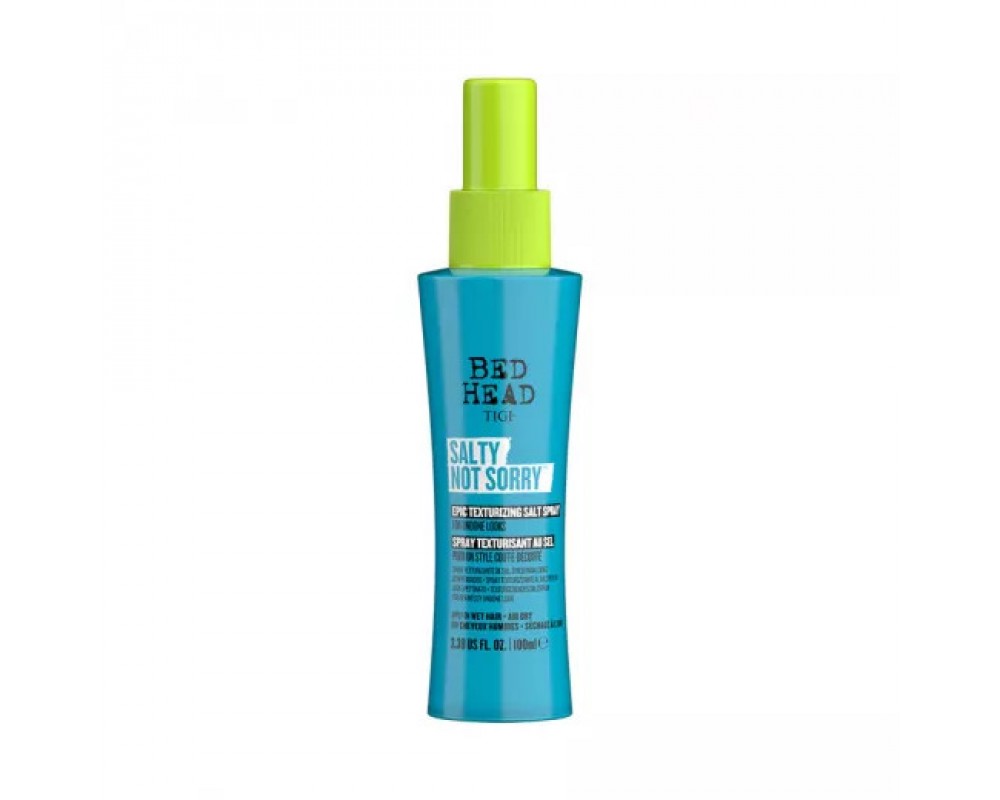 TIGI Bed Head Salty Not Sorry Dokulandırıcı Deniz Tuzu Spreyi 100ml, saçlara doğal ve hacimli plaj dalgaları kazandıran profesyonel bir texturizing spreyidir. Deniz tuzu etkisi ile saçta mat bir bitiş sağlar, hafif tutuş sunar ve gün boyu saç şeklinizi korur. Elektriklenmeyi önler ve tüm saç tiplerinde kullanım için uygundur.